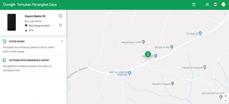 Pratham Hub - Seketika Google akan menampikan lokasi terkini dari Hp Xiaomi kamu yang hilang seperti pada gambar dibawah ini.